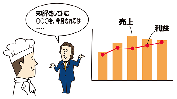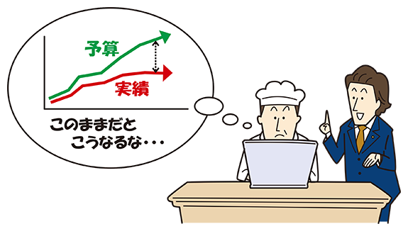 業績管理体制の構築による黒字化体質への転換をご支援します ”夢の実現”に向けた事業計画の作成と達成のために、自社の現状を踏まえた上で目標設定を行い、それを達成するための事業計画を作成する。(P)毎月、計画値(予算)と実績の差異を確認し、打ち手を考える。(D)四半期毎に、今後の対策を検討するための業績検討会を行う。(C)業績検討会で見つかった問題点を解決するための対策を行う。(A)このような業績管理体制(PDCA※サイクル)を社内に構築することが重要です。※PDCA : Plan(計画)、Do(実行)、Check(検証)、Action(対策) 「中期経営計画」の策定をサポート 中期経営計画を策定する目的は、3~5年後に達成すべき自社の経営目標を設定し、「これから、何をなすべきか」を明らかにすることです。当事務所では次のような流れで、貴社の中期経営計画の策定をサポートします。 現状確認と問題点の抽出 「貴社の過去3期分の業績確認」と、「貴社と同業他社(黒字企業・優良企業)との比較分析」を行い、問題点を抽出します。 将来予測と対策の検討 「このままだと、こうなる」という予測を行い、これを基礎として経営改善・経営革新を行うための対策を盛り込んだ計画を策定します。 中期経営計画の確認 策定した計画を達成するための具体的な行動計画をまとめ、計画書を完成させます。 「短期経営計画」の策定をサポート 当事務所では、短期経営計画を次のいずれかの方法で策定します。1.中期経営計画を策定している場合は、その初年度を翌期の計画として、短期経営計画を策定します。2.経営者への簡単な質問(5つ)から短期経営計画を策定します。(簡便法) 販売計画・設備投資計画・資金繰り計画の策定 より詳細な計画を策定するため、商品別・得意先別の販売計画や、設備投資計画、資金繰り計画を策定します。 行動計画のまとめ 翌期の目標を達成するための具体的な行動計画をまとめ、計画書を完成させます。行動計画に記載された実行可能な業務を着実に行っていくと、その成果が経営数値となって反映されます。 「予算実績比較」・「対策検討」をサポート 計画を策定したら、行動計画に沿って日常業務を遂行する必要があります。実行すると、その結果が数字として表れますので、月次で予算と実績の差をチェックします。そして実績が予算に届かない場合は、どのような対策を行うか検討します。当事務所では、「予算と実績の比較」と「対策の検討」を行うため、以下のサポートを行います。 予算と実績を解説 予算と実績を、グラフを使って分かりやすく解説します。そして問題点を様々な角度から検討し、どのような対策を講じることができるかアドバイスします。 期末までの業績予測 最新業績をもとに、期末までの業績予測を行います。なお、この時点で業績予測に基づく必要納税額を事前にお知らせします。 決算対策のアドバイス 決算予測と納税額の試算に基づき、決算までに間に合う具体的な決算対策をアドバイスします。なお、当事務所がご提案する決算対策は、すべて法令に準拠した範囲内とさせていただきます。 経営革新等支援機関ページへ お気軽にお問い合わせください。045-441-2356受付時間 10:00-17:00 [ 祝日定休 ] お問い合わせ